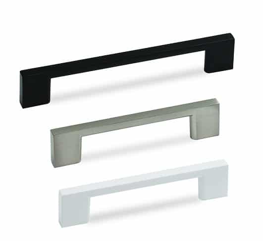 ידית מעוצבת בקווים ישרים עם קצוות מרובעים, מתאימה לשדרוג מגירות וארונות במטבח, בחדרי רחצה ובריהוט כללי.