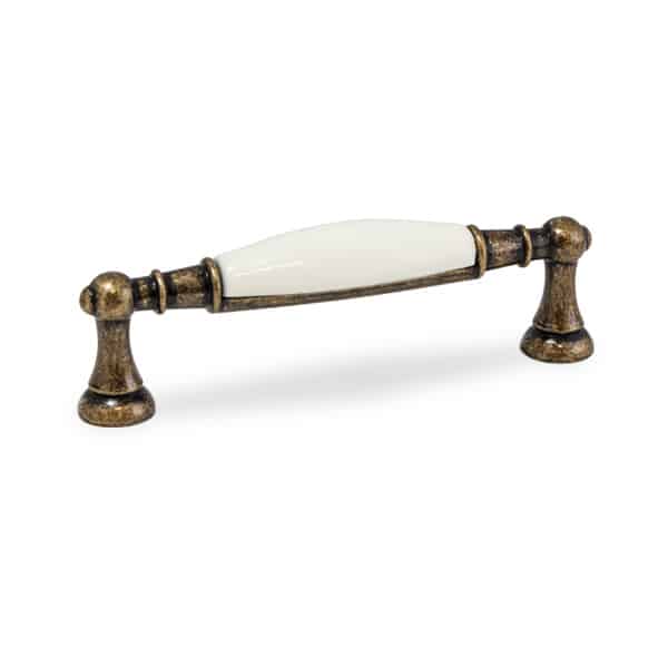 ידית קלאסית ואלגנטית בעיצוב חלק ונקי, משלבת גוף בגימור ברונזה עתיקה עם פורצלן בצבע שנהב.