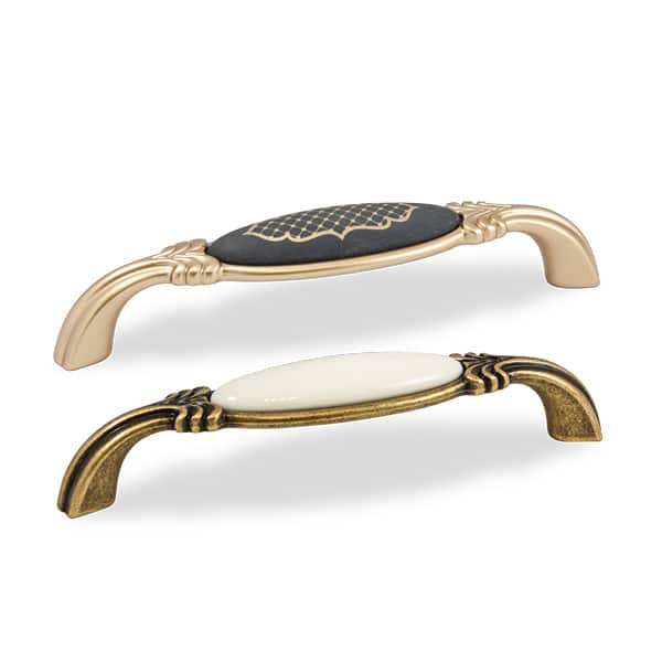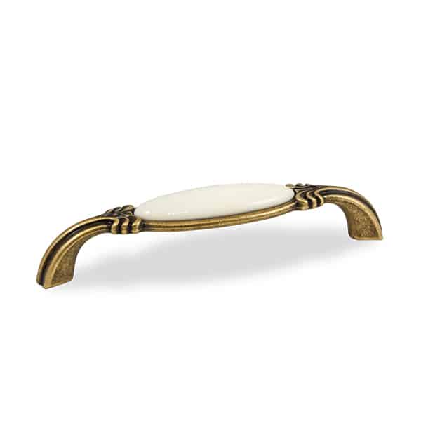 ידית אלגנטית בעיצוב קלאסי, משלבת בין מתכת מעוצבת לפורצלן ייחודי. מתאימה לרהיטים ומטבחים המעוניינים בטאצ’ יוקרתי עם וינטאג'.