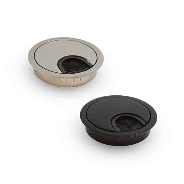 מעביר כבלים עגול בעיצוב קומפקטי, מאפשר סידור נוח ואסתטי של כבלים בשולחנות עבודה, משרדים ועמדות מחשב.