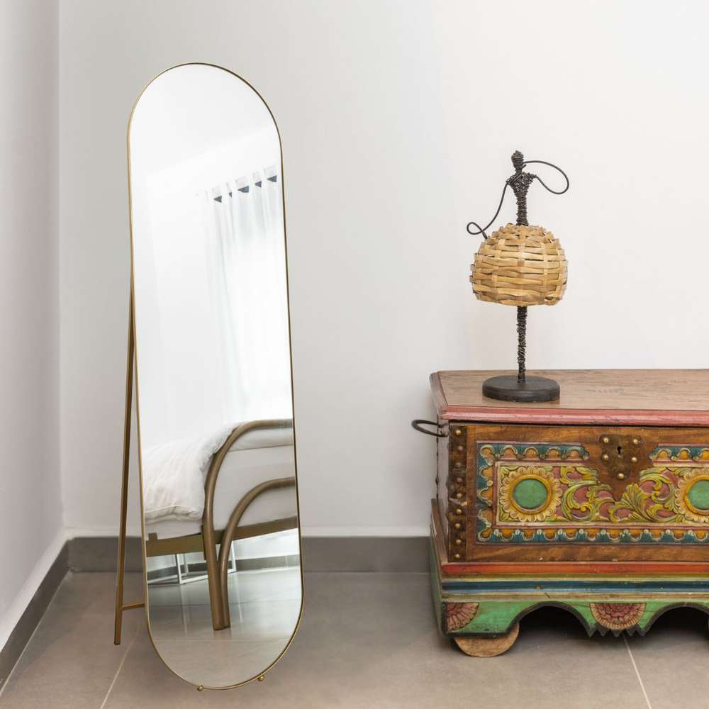 המראה ניתנת להנחה בצורה עצמאית על הרצפה, ללא צורך בהתקנה, והיא יכולה להוסיף למראה הכללי של החדר תחושת אלגנטיות ועיצוב עדכני.