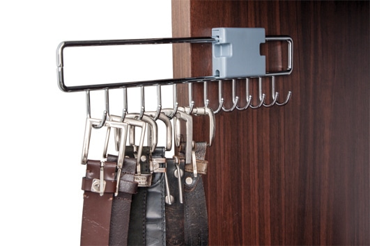 המתקן נשלף בקלות הצידה, ומאפשר לכם לבחור את החגורה הרצויה במהירות ובנוחות, ללא צורך לחפש בעומק המדפים.